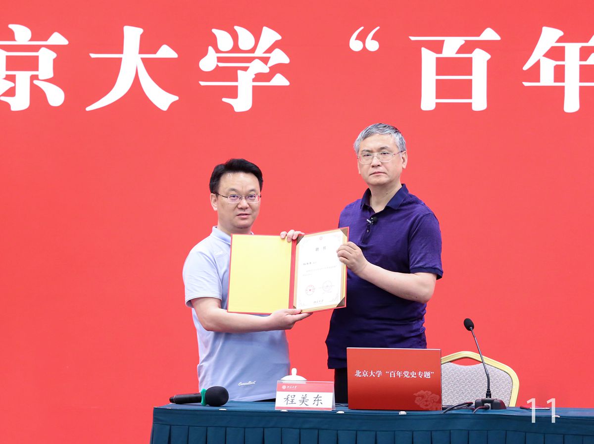 课程开始前,王久高向程美东颁发课程主讲人聘书。